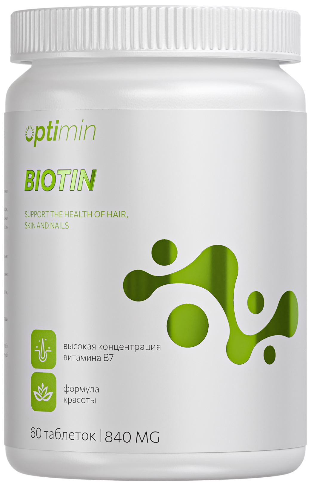 Биотин — это пищевая добавка, содержащая водорастворимый витамин группы B, обнаруженный в небольших количествах в тканях живых организмов. Источником биотина служат дрожжи, орехи, шпинат. Биотин учавствует в организме для нормальной работы ферментов, обмена аминокислот, липидов и сахаров.