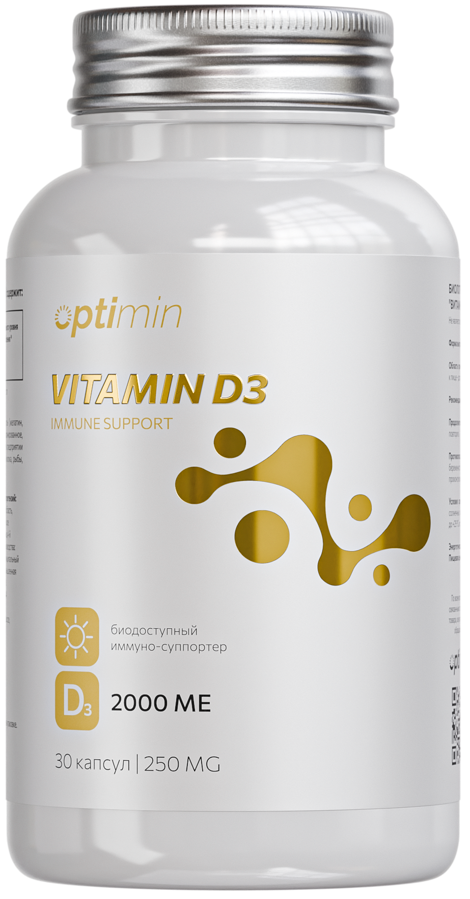Витамин D3 — это пищевая добавка, содержащая одну из форм витамина D, вырабатываемая кожей человека под действием ультрафиолетовых лучей солнца. В природе содержится в жирной рыбе. Учавствует в регулировании уровня кальция и фосфора в крови, необходимых для минерализации костей и зубов.